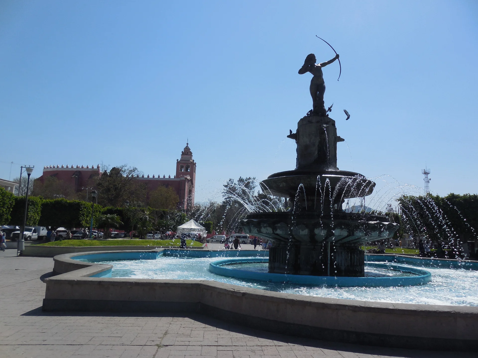 Sur la Plaza Juárez, une sculpture de bronze de 7 mètres attire le regard : c'est la Diana Cazadora originale, celle qui trônait sur le Paseo de la Reforma à Mexico. Endommagée en 1968, elle a été récupérée par le régent de Mexico, natif de la ville, et installée ici. Celle de Reforma est une copie.