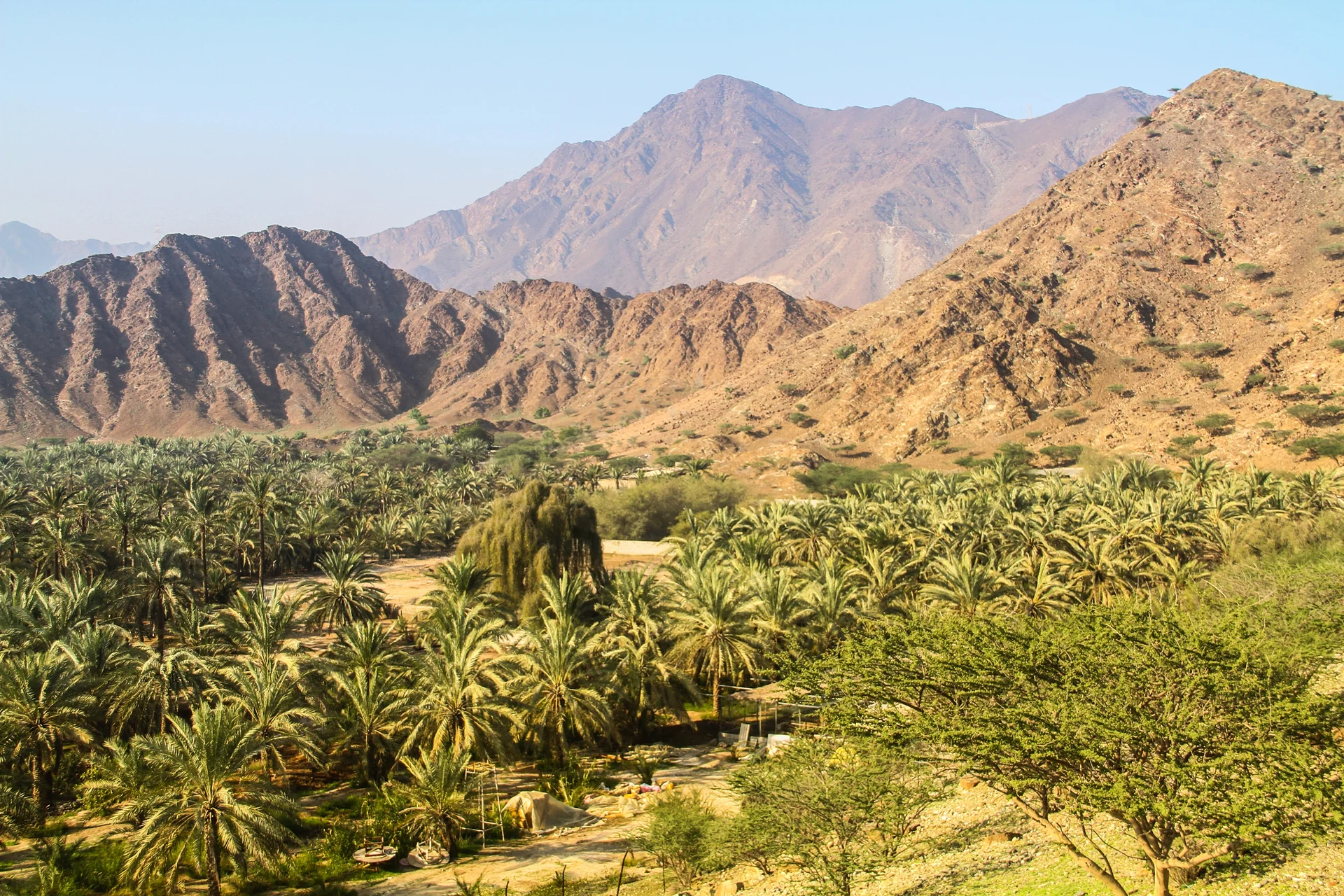 Aucun aéroport commercial : l'accès se fait via Dubaï (90 minutes) ou Sharjah (75 minutes) par la route de montagne spectaculaire. Les taxis inter-émirats coûtent 150-200 AED, les bus publics 15 AED avec correspondance. Une voiture s'impose pour explorer wadis et villages reculés. Location possible dès 140 AED/jour, préférez un SUV pour les pistes de montagne.