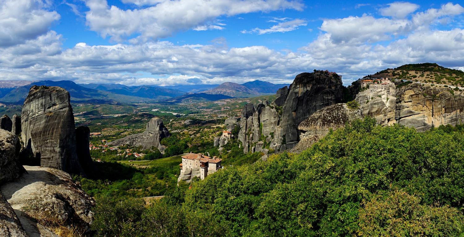 En Thessalie, région du centre de la Grèce et terre mythologique des centaures, Kalambaka est une petite ville dont le charme réside surtout dans l'environnement exceptionnel. Enclavée dans la montagne, elle offre des panoramas somptueux et un terrain de jeux naturel propice aux activités sportives. Mais si elle accueille tant de visiteurs chaque année c'est pour un site unique au monde, aussi spectaculaire que rare : les Météores et leurs incroyables monastères bâtis aux sommets.