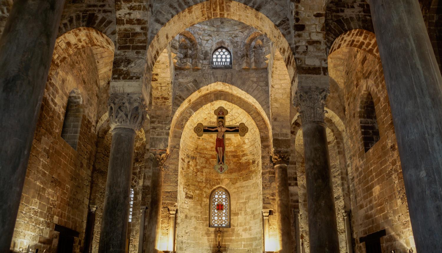 Du somptueux complexe que possédait Maione da Bari, le grand amiral de Guillaume Ier de Sicile, elle est le seul vestige. Bâtie entre 1154 et 1160, l'église a connue un destin étonnant durant lequel elle a été sous la protection des Bénédictins de Monreale, jusqu'en 1787, avant de servir de bureau de poste pendant un siècle. L'architecte Giuseppe Patricolo lui rendra sa structure initiale mais surtout son âme médiévale et ce fut une idée de génie. Dans une ville où les mosaïques et les dorures éblouissent, la beauté dépouillée de l’Église de San Cataldo réside dans la pierre. On retrouve tout de même une sublime mosaïque au sol mais c'est la seule décoration intérieure. Les murs nus laissent briller l'architecture composée des styles arabe et normand qui savent si bien se marier en Sicile. L'espace est préservé avec trois nefs séparées par quatre colonnes qui, avec les arches, soutiennent les fameux trois petits dômes rouges. Certaines ont des chapiteaux sculptés et l'ensemble est somptueux. Les voûtes transversales ajoutent au charme, la vue sous la coupole centrale est magnifique. Pour son atmosphère qui n'appartient qu'à elle, l’Église de San Cataldo mérite vraiment d'être visitée.