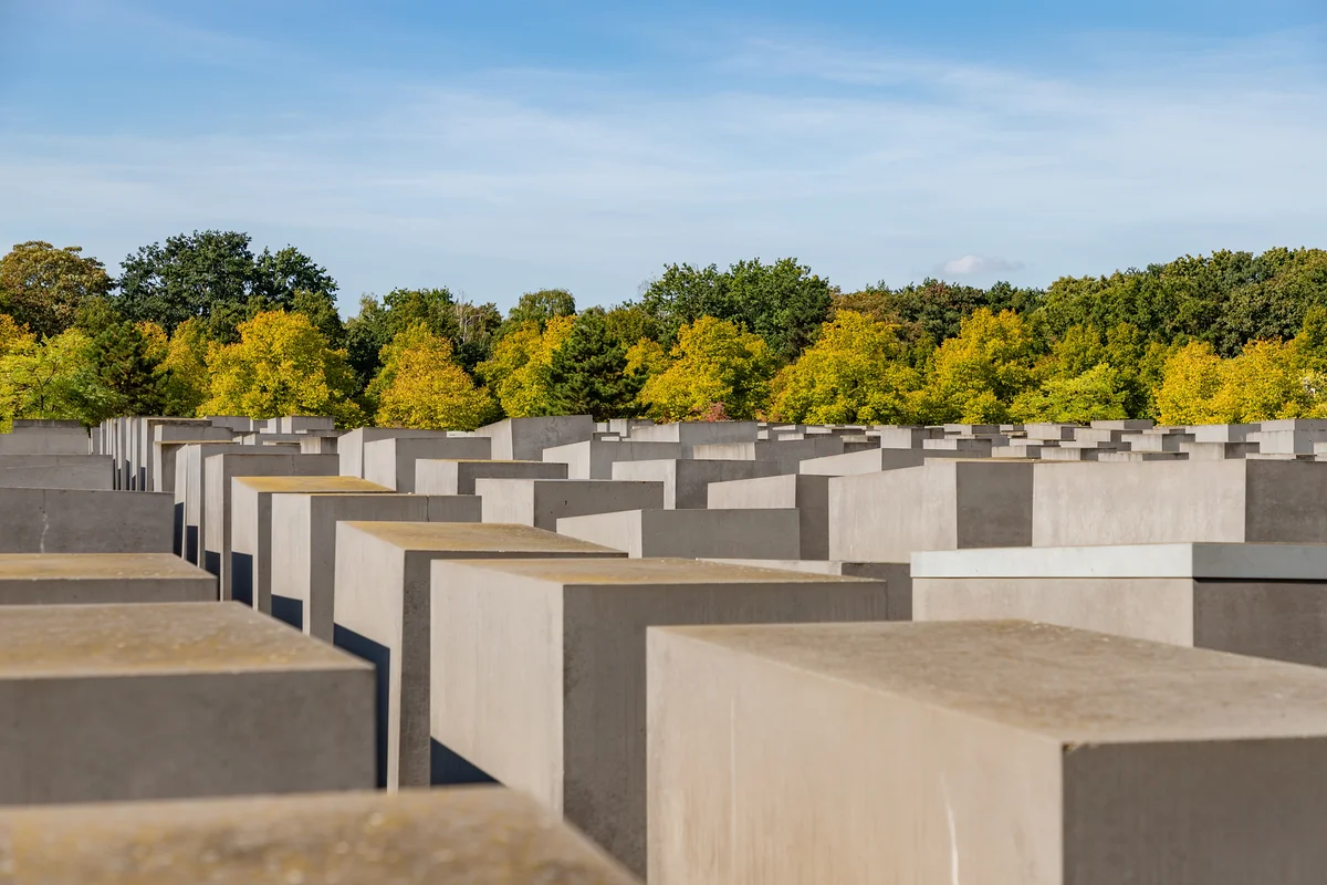 Inauguré en 2005, ce monument conçu par l'architecte américain Peter Eisenman occupe 19 000 m² à deux pas de la Porte de Brandebourg et de l'ancien emplacement du bunker d'Hitler. L'emplacement n'est pas anodin. Eisenman a délibérément refusé toute symbolique explicite : pas de noms gravés, pas de dates, pas de figures humaines. Le visiteur est renvoyé à sa propre interprétation de l'oppression, de l'isolement, de la perte.