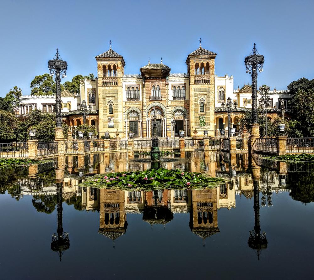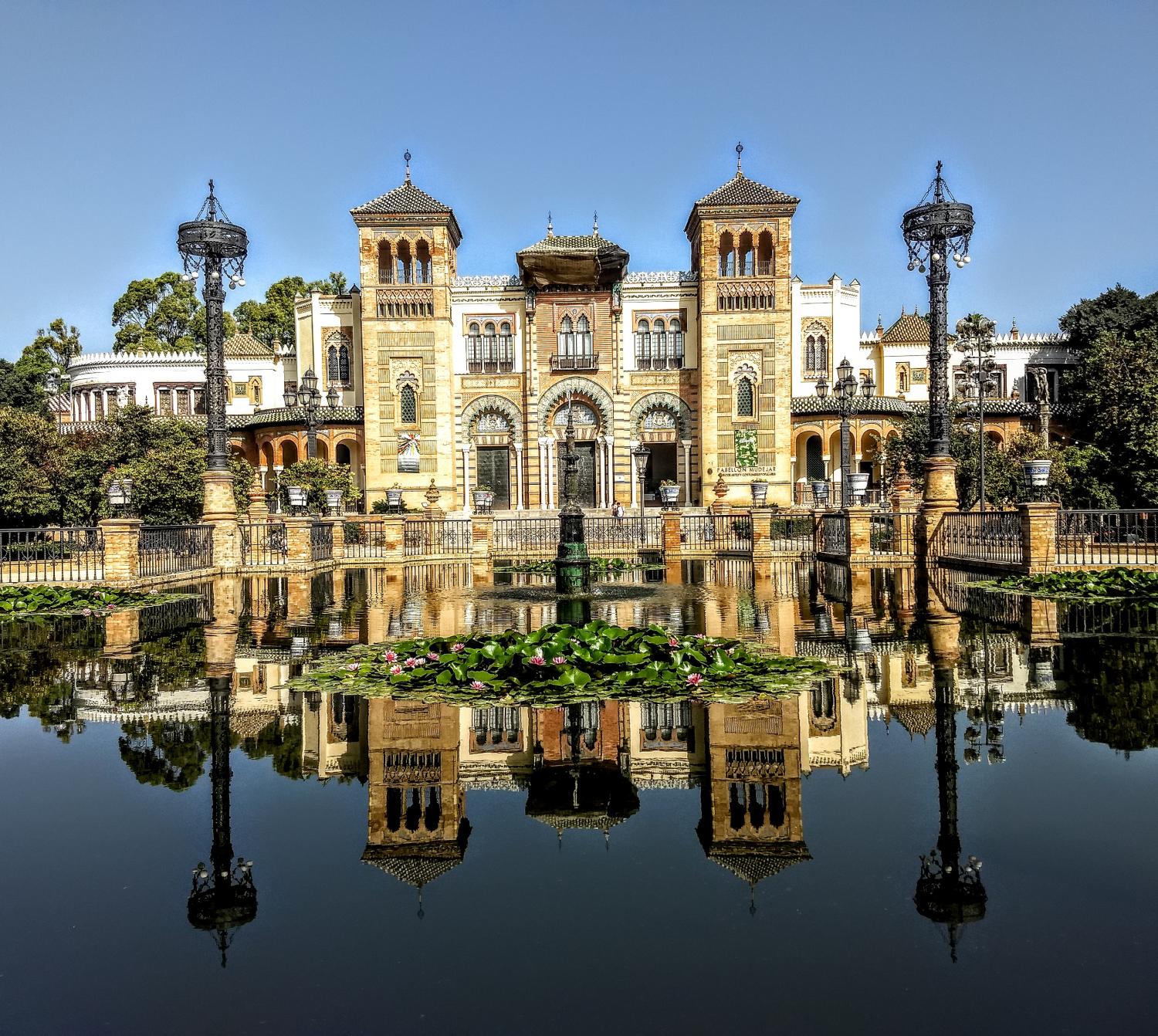 Avant de découvrir l'intérieur, c'est d'abord un des plus bels édifices de la ville qui fait face aux visiteurs. Le Pavillon mudéjar est un chef-d’œuvre architectural, sa merveilleuse façade se reflète dans un plan d'eau, il est le bijou du Parc Maria Luisa. C'est dans ce monument somptueux que quatre étages consacrés aux traditions andalouses ont élu domicile. Le principal offre 2 000 m² découpés en un espace d'exposition temporaire et une salle dédiée à la collection de broderies et dentelles de Díaz Velázquez. C'est une des plus faramineuses d'Europe, trousseaux domestiques, vêtements, linge de table, lingerie... De l'aiguille aux fuseaux, on est happé par cet univers délicat et hypnotique qui oscille entre or et soie. Une reconstitution de la demeure du collectionneur ouvre les portes d'une maison de la haute bourgeoisie du XIXe siècle. Un mobilier qu'on retrouve de façon plus générale au sous-sol, avec les ustensiles de cuisine d'époque, la décoration, les divers équipements suivant les pièces de vie mais aussi des salles vouées aux métiers. Et là, entre le cuir, la tonnellerie, les fabricants de castagnettes, les doreurs, les tanneurs, les potiers ou la peinture sur faïence, l'artisanat embrasse souvent l'art. Les armes du XVIIe au XXe siècle sont en vitrine, les techniques d'agriculture sont passionnantes et les admirateurs de l'art de l'azulejo, céramique incontournable seront comblés. La visite est réellement instructive, la culture andalouse est si riche qu'elle méritait vraiment ce sanctuaire.