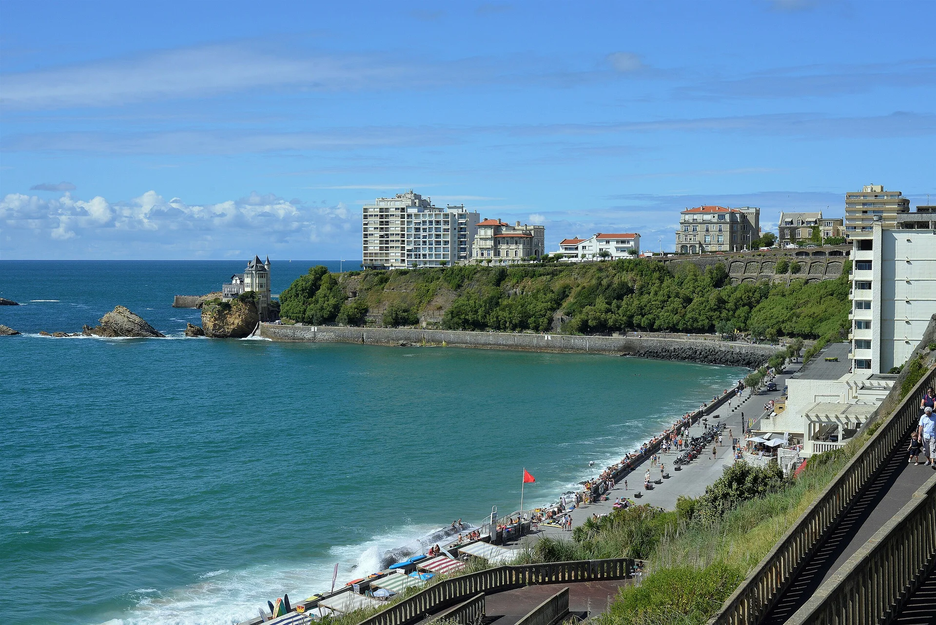 Particulièrement prisé pour ses couchers de soleil depuis l’avenue Notre-Dame, en haut de la falaise, la plage de la côte des Basques rassemble en moyenne 4 000 visiteurs quotidien. Surveillée de juin à septembre, les postes de secours distribuent gratuitement des bracelets d’identité pour enfants et de la crème protectrice contre les UV. Avis aux curieux et autres amateurs de sensations iodées : vous y trouverez pas moins de 8 écoles et 2 clubs de surf ! Les restaurants conviviaux ainsi que les terrasses panoramiques des bars complètent l’offre, pour le plus grand bonheur des estivants.