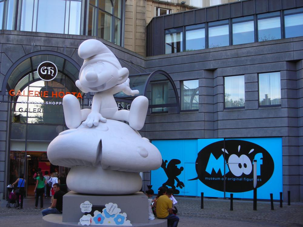 Sous les voûtes de la Galerie Horta, un Schtroumpf géant blanc monte la garde. Passé ce gardien de résine, les escalators vous aspirent vers un labyrinthe de 1 300 m² où Tintin côtoie Spider-Man, où Astérix trinque presque avec Naruto. L'air vibre d'une bande-son nostalgique, les vitrines scintillent de couleurs vives. Vous voilà au cœur de la plus grande collection privée de figurines de BD en Europe.
