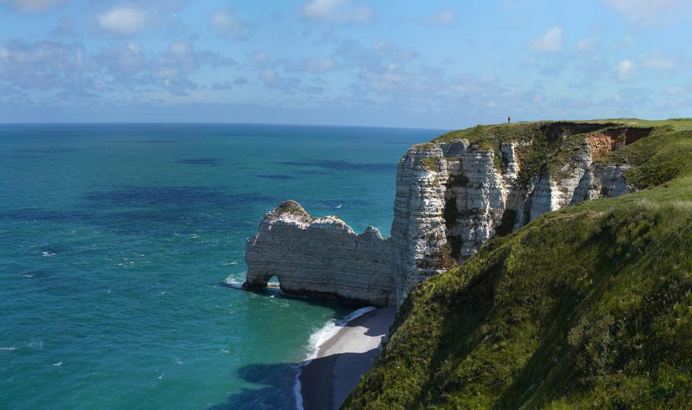Le vent siffle sur le plateau herbeux, chargé d'embruns salés. À 85 mètres au-dessus des vagues, la craie blanche découpe l'horizon comme une lame. C'est ici, sur la falaise d'Amont, que Guy de Maupassant voyait un éléphant plongeant sa trompe dans les flots. Une image si juste qu'elle hante encore quiconque contemple l'arche depuis la plage de galets.