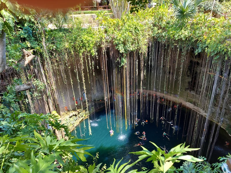 Le Cénote Ik Kil est une attraction populaire située à proximité du site archéologique de Chichén Itzá, au Yucatán. Ce cénote à ciel ouvert, bien que souvent encombré par les touristes, offre un aperçu intéressant des formations géologiques de la région. Avec un diamètre d'environ 60 mètres et une profondeur de 40 mètres, ses parois rocheuses sont recouvertes de végétation et de lianes. L'eau est généralement claire, mais peut paraître un peu sombre en raison de la profondeur et des conditions météorologiques.