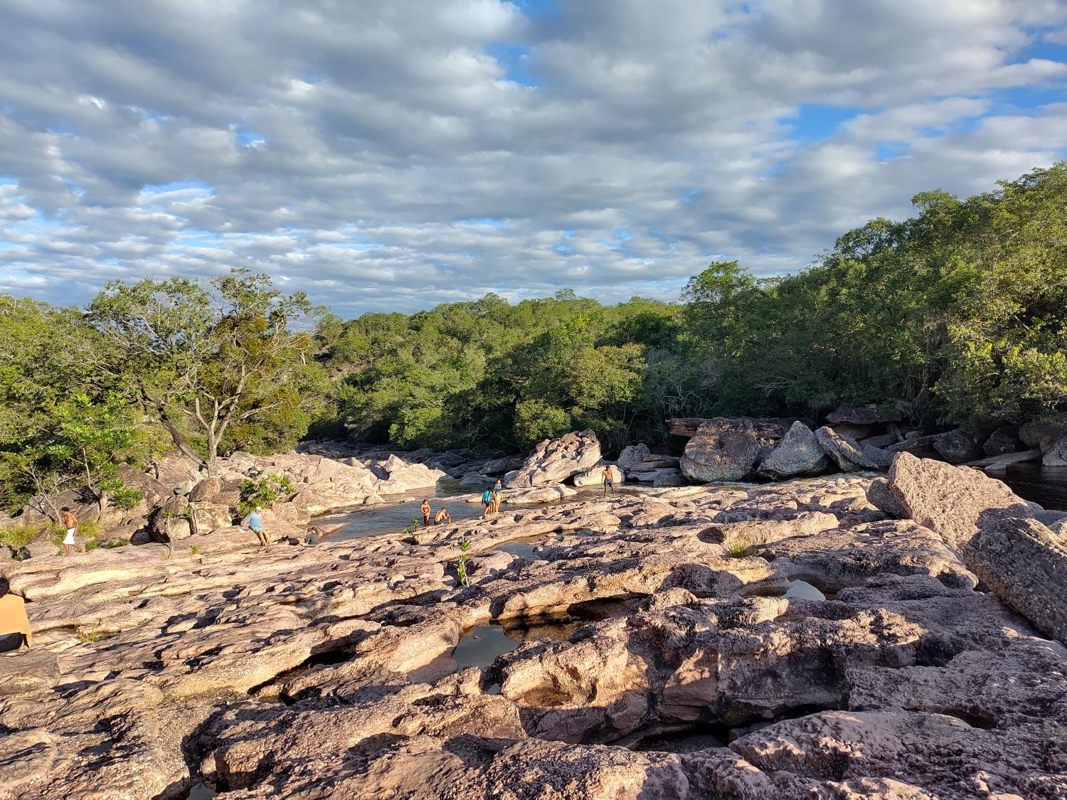 L’un des attraits principaux du Ribeirão do Meio est son immense dalle rocheuse polie par l’eau, qui forme un véritable toboggan naturel. Les plus téméraires peuvent glisser sur plusieurs mètres avant d’atterrir dans un bassin d’eau claire. L’endroit est sécurisé, mais mieux vaut tester la roche avant de s’élancer pour éviter une mauvaise surprise.