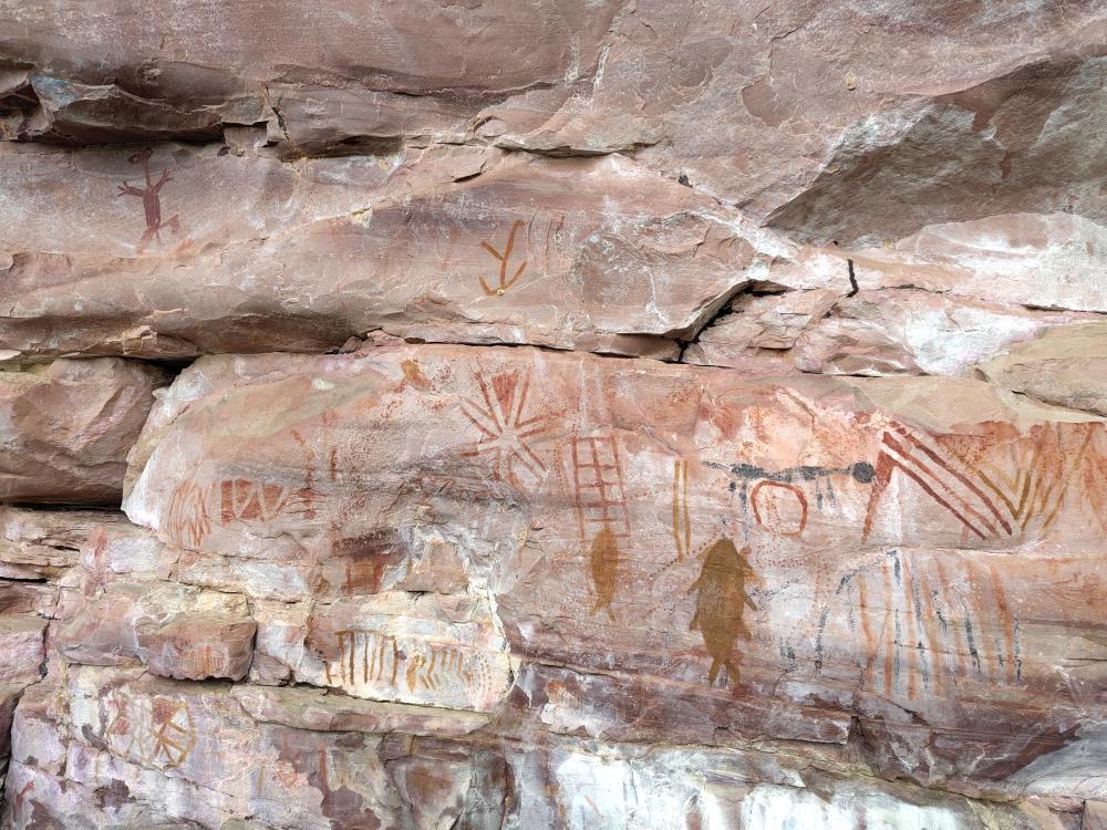Les parois rocheuses du site sont couvertes de représentations humaines, animales et géométriques, tracées à l’ocre rouge. Certaines scènes semblent illustrer des rituels, tandis que d’autres laissent place à diverses interprétations. L’un des motifs les plus célèbres est une figure évoquant un extraterrestre, alimentant les théories et la curiosité des visiteurs.