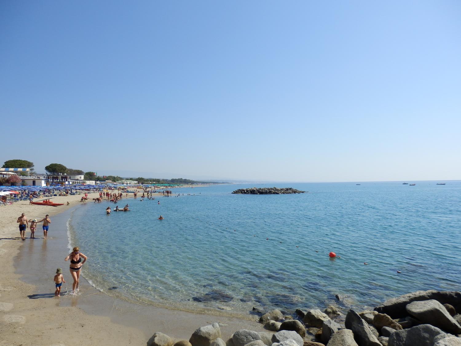 Entre le fleuve Alessi et le torrent Lamia, Copanello est l'endroit parfait pour savourer les plaisirs de l'eau. Dans cet éventail de sites pittoresques, c'est pourtant son rivage situé sur le littoral du golfe de Squillace qui retient toute l'attention. Une large et longue bande de sable fin, doux et clair, assure assez d'espace où poser sa serviette et de nombreux équipements sont également disposés. Transats et parasols déjà installés n'attendent que les amoureux des cadres splendides et en haute saison, ils sont fort nombreux. Le hameau est petit mais il s'inscrit dans la liste des plages les plus appréciées. Évidemment, comme partout dans le sud de l'Italie, la mer n'y est pas étrangère. A perte de vue, elle s'étend dans des couleurs inouïes, d'un bleu profond à des verts irisés, sa pureté et sa transparence offrent des airs de Caraïbes à la Calabre. On s'y baigne sans danger, ses fonds marins font le bonheur des adeptes du snorkelling, elle est si cristalline qu'un tuba suffit pour découvrir ses merveilles. Un amas rocheux dessine une petite île qui ajoute un charme fou à la vue, c'est le récif de Copanello. De nombreux commerces de restauration longent la plage, parfaits pour prolonger des journées paradisiaques.
