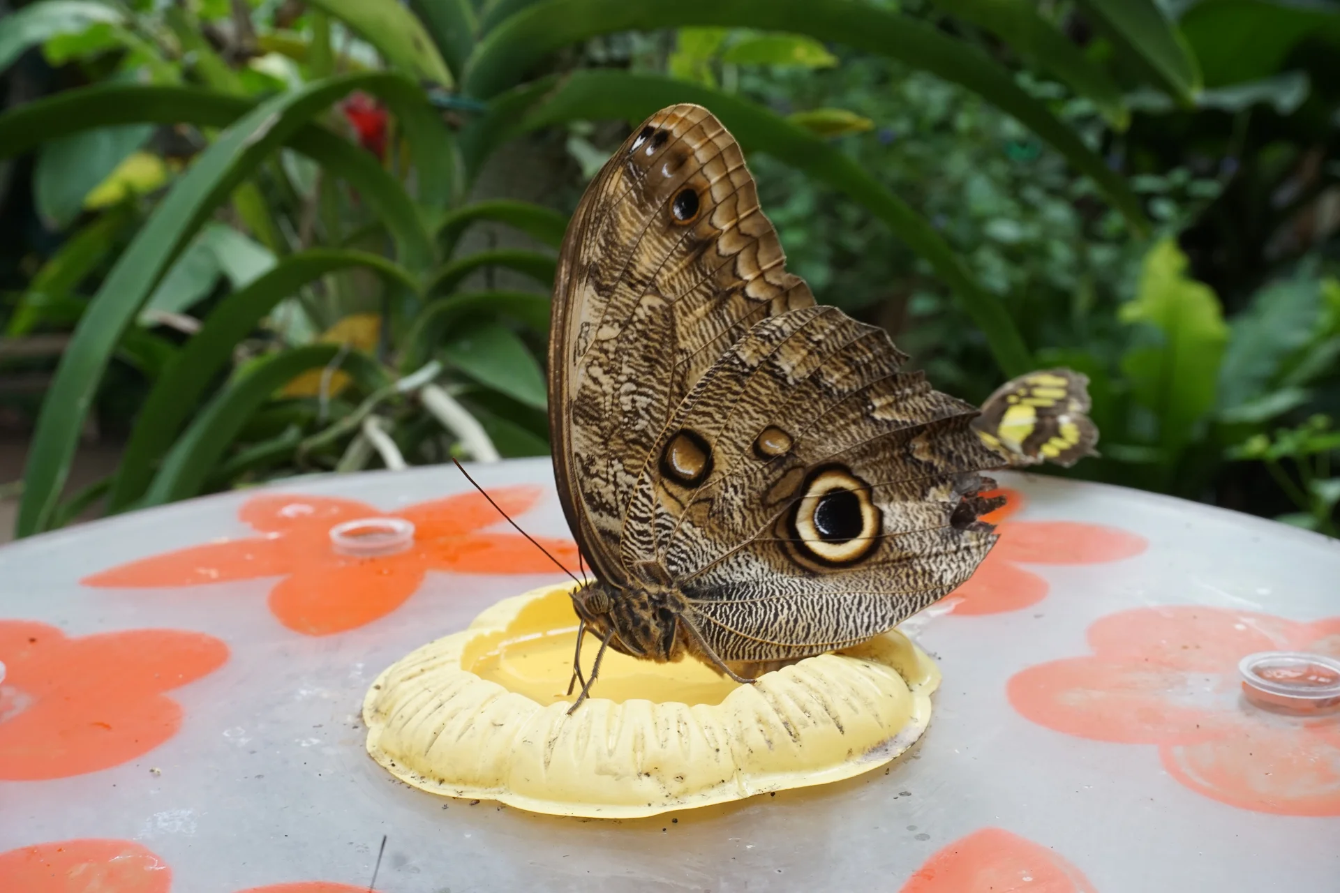 Les 720 m² de serre reproduisent les conditions climatiques des forêts tropicales d'Amérique du Sud, d'Asie et d'Afrique. Les végétaux ne sont pas là pour faire joli : hibiscus, lantanas et passiflores fournissent le nectar dont les papillons se nourrissent. Des bananes bien mûres complètent leur alimentation. On croise aussi des cailles de Chine qui trottinent au sol. Leur rôle : éliminer les pucerons et parasites sans recourir aux pesticides.