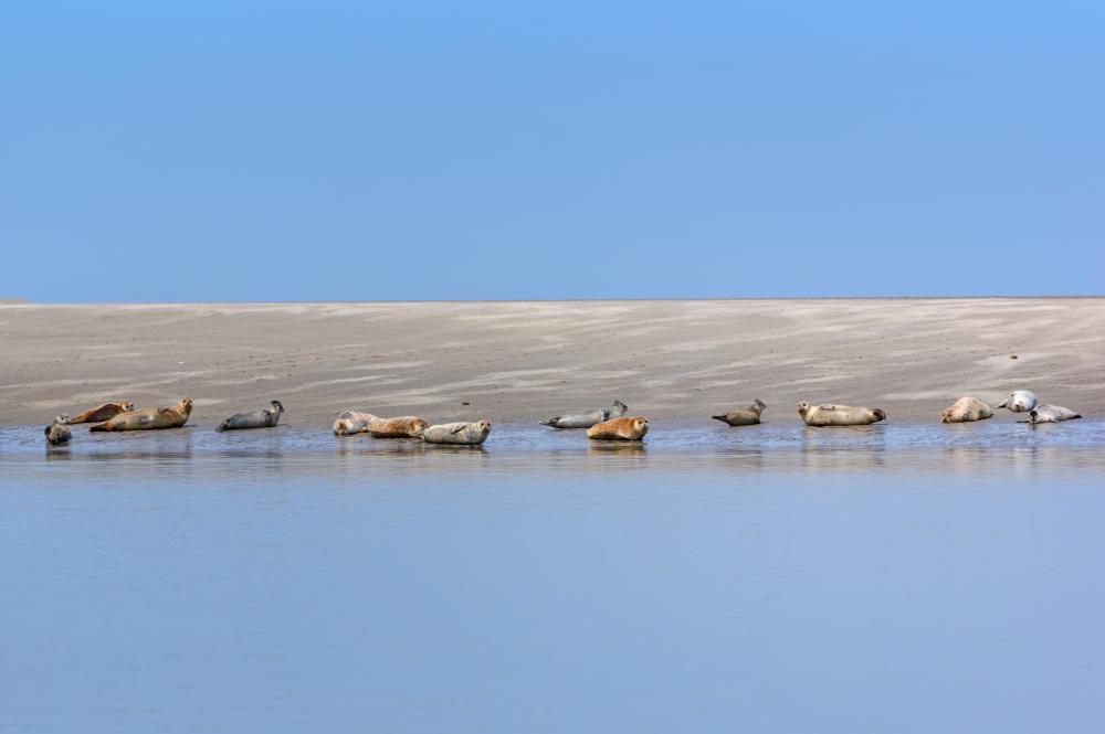 À marée basse, les bancs de sable se couvrent de silhouettes arrondies. La baie héberge environ 600 phoques, dont 450 veaux marins et 150 phoques gris. Les meilleures observations se font deux heures avant ou après la marée haute, lorsque les mammifères marins rejoignent leurs reposoirs. Les femelles mettent bas en juin et juillet : l'été offre donc la chance d'apercevoir les nouveau-nés.