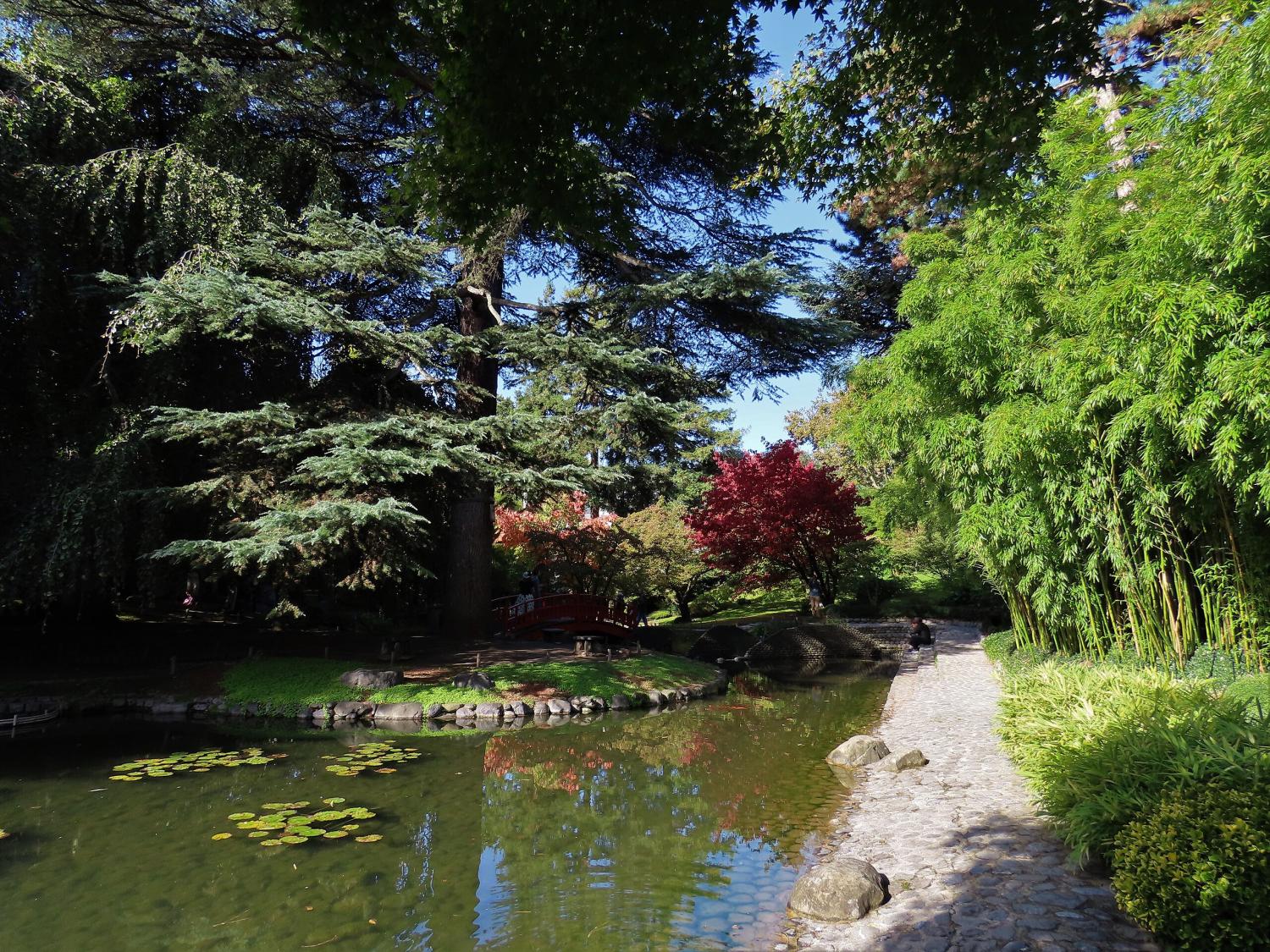 Le jardin japonais constitue le point d'orgue de la visite. Le pont rouge, réplique du pont Shinkyo de Nikko, enjambe un bassin où se mirent les érables. Un pavillon de thé accueille parfois des cérémonies traditionnelles.
