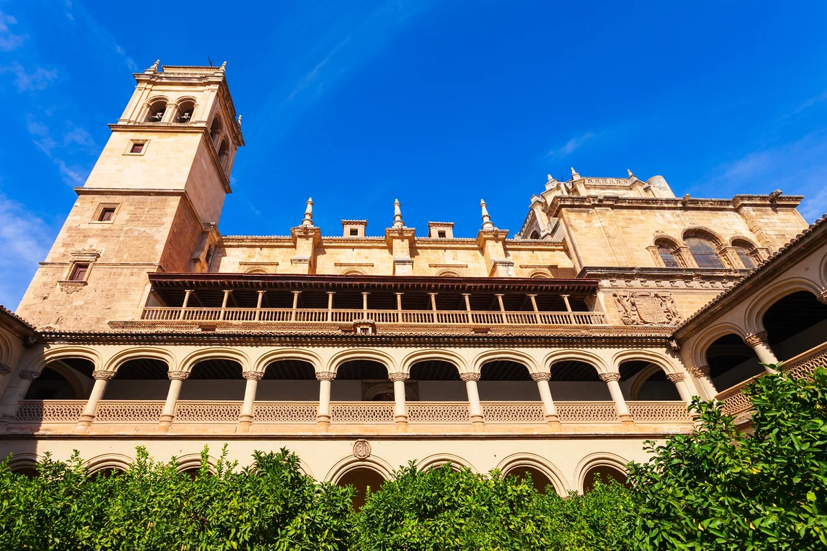 Diego de Siloé a conçu sept portails magnifiques qui devaient mener à des chapelles funéraires de grandes familles grenadines. Aujourd'hui, ils donnent accès aux différentes dépendances : réfectoire, salle capitulaire, sacristie baroque éblouissante. Les naranjos du patio diffusent leur parfum au printemps.